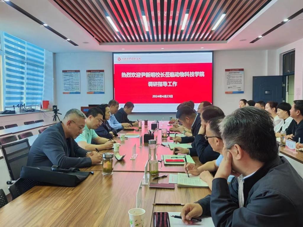 4月23日上午,校长尹新明教授莅临动物科技学院调研指导,相关职能部门负责人陪同调研。动物科技学院领导班子、科级以上干部及各教研室主任参加调研座谈会,会议在生工楼B301召开。