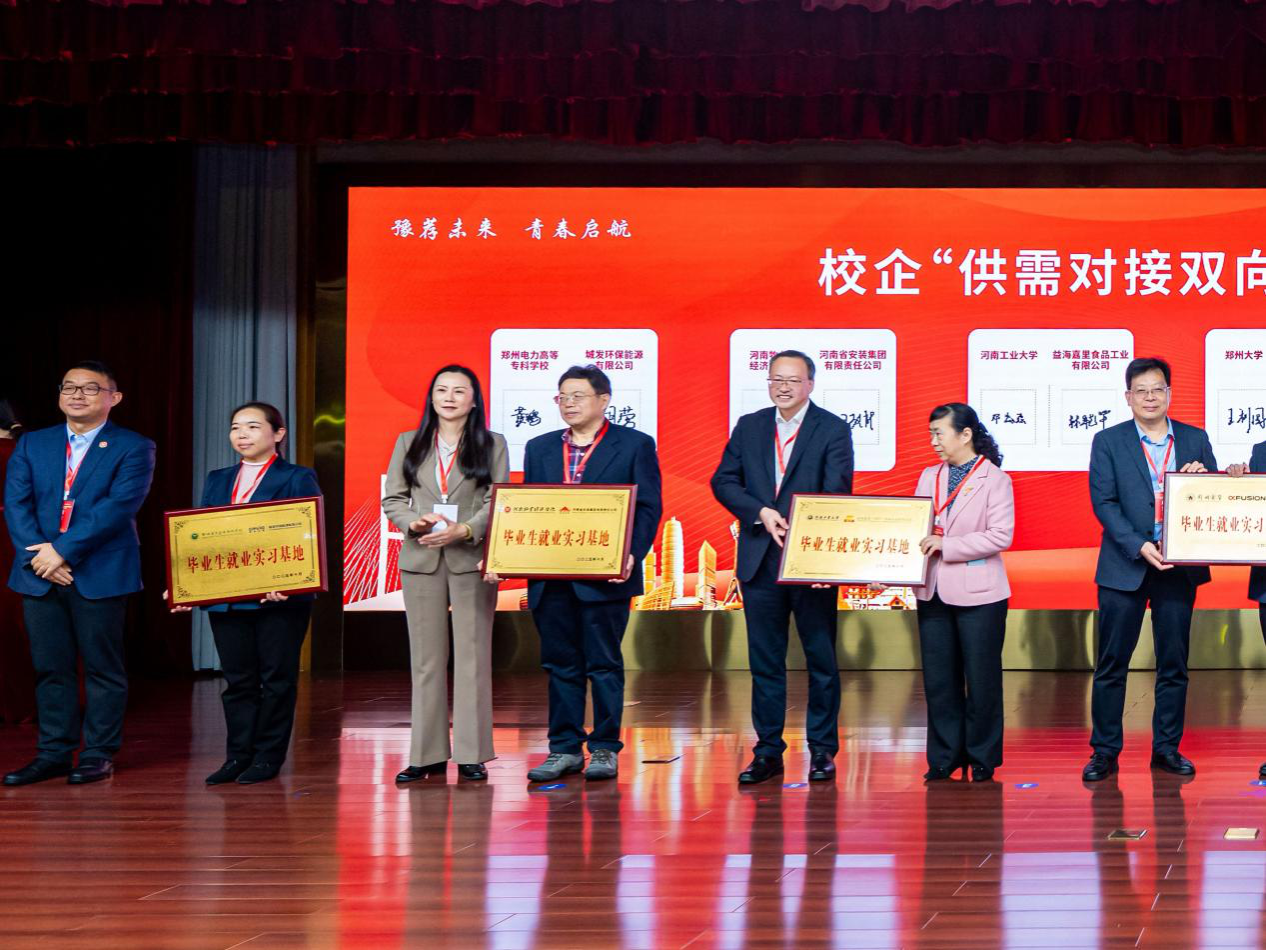 在校企“供需对接双向奔赴”签约授牌仪式中,马珺作为全省7所高校代表之一,与河南安装集团签订“校企供需对接”合作协议,并授予企业“毕业生就业实习基地”牌匾。下一步,双方将在人才培养、产学研合作、实习实践及人才供需方面展开深入合作。副校长马珺强调,校企协同是应用型人才培养的关键路径,学校将依托“牧工商一体化”办学优势,持续深化产教融合,精准对接行业需求,携手共助学生成长。