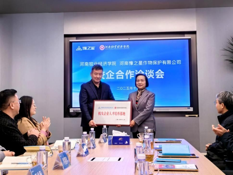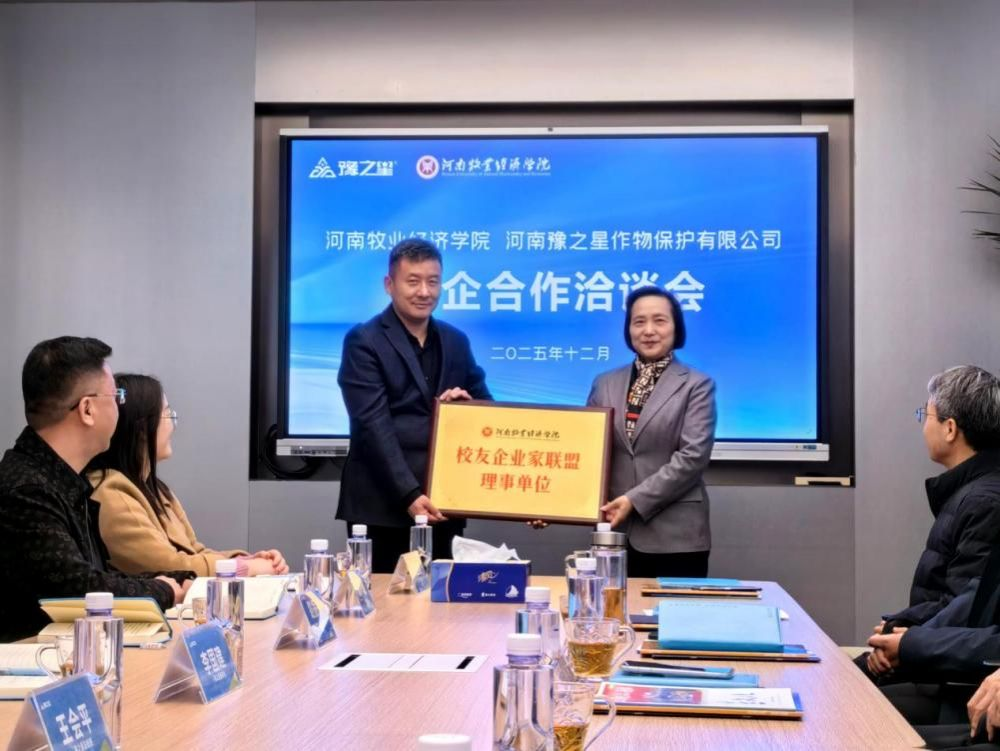 会上,校企双方举行授牌仪式。尹新明代表学校向豫之星授予“河南牧业经济学院校友企业家联盟理事单位”牌匾;李国建代表企业向学校授予“校友企业人才培养基地”牌匾,标志着双方合作迈入长效化发展新阶段。